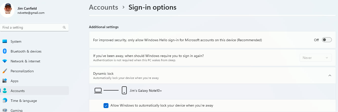 Obviously, another option is to have the computer screen go to sleep and require a password or pin to reenter Windows but setting a short time for entering sleep can find you constantly signing back into Windows. Too long and you still run the risk of leaving the computer on when you leave the device. With Dynamic lock, you can be confident that your computer is locked when you run an errand.