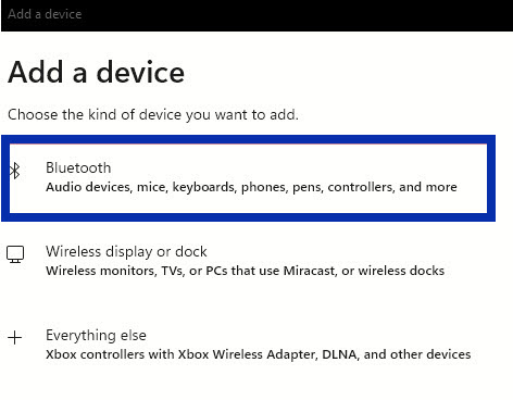 A new window will open giving you the ability to select the type of device you wish to activate. Because we are trying to pair to a phone select the first item “Bluetooth” If your device does not appear by name it might show as an “unknown device” but when you attempt to pair it will produce a code and if the one on your phone and PC match you should be good to go.