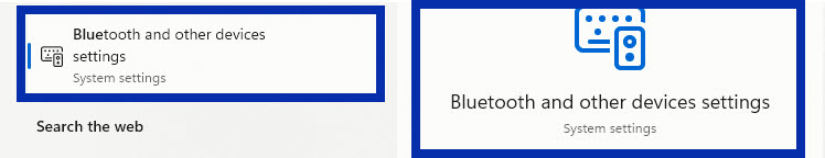 - Bluetooth and other devices settings” will appear as the top choice in the list.